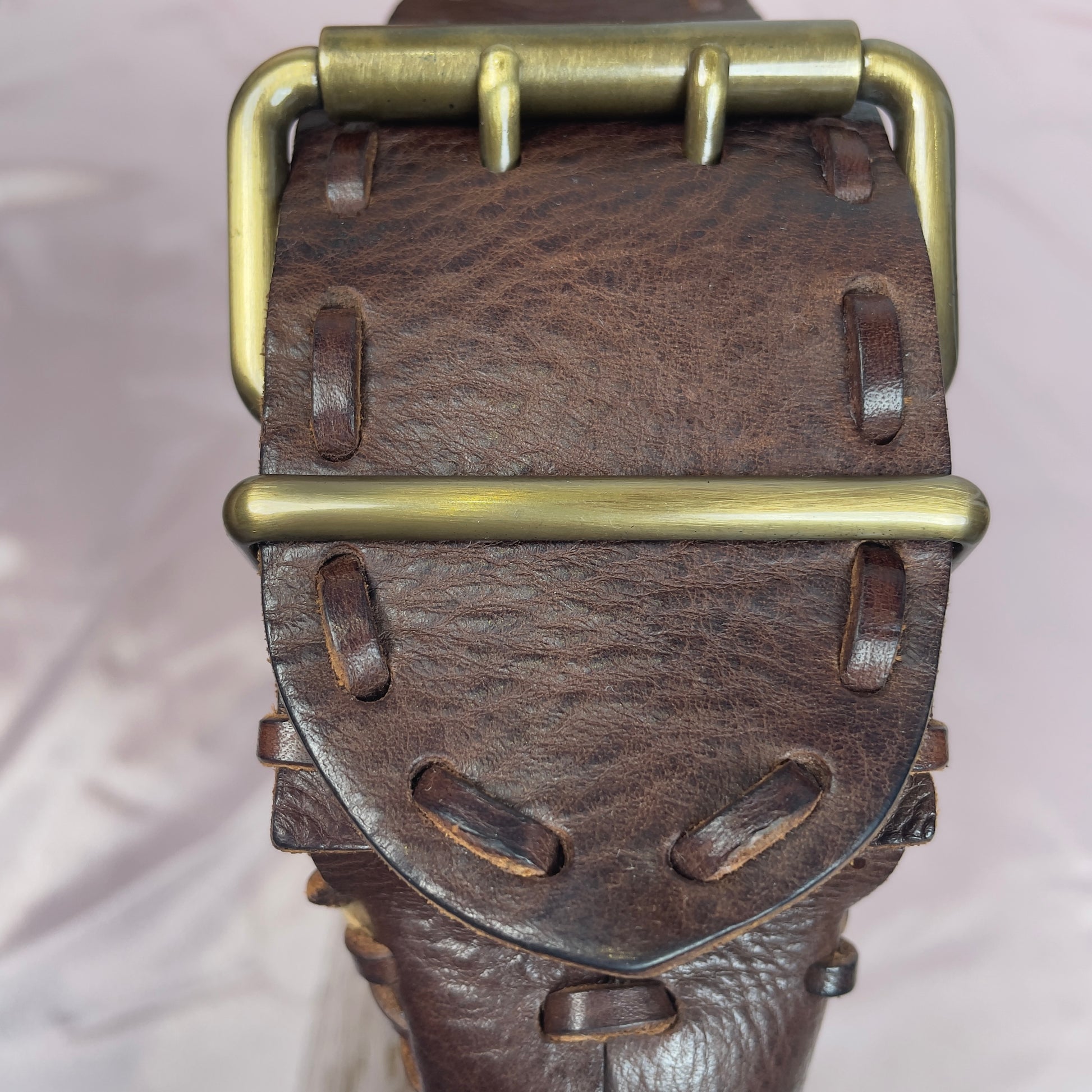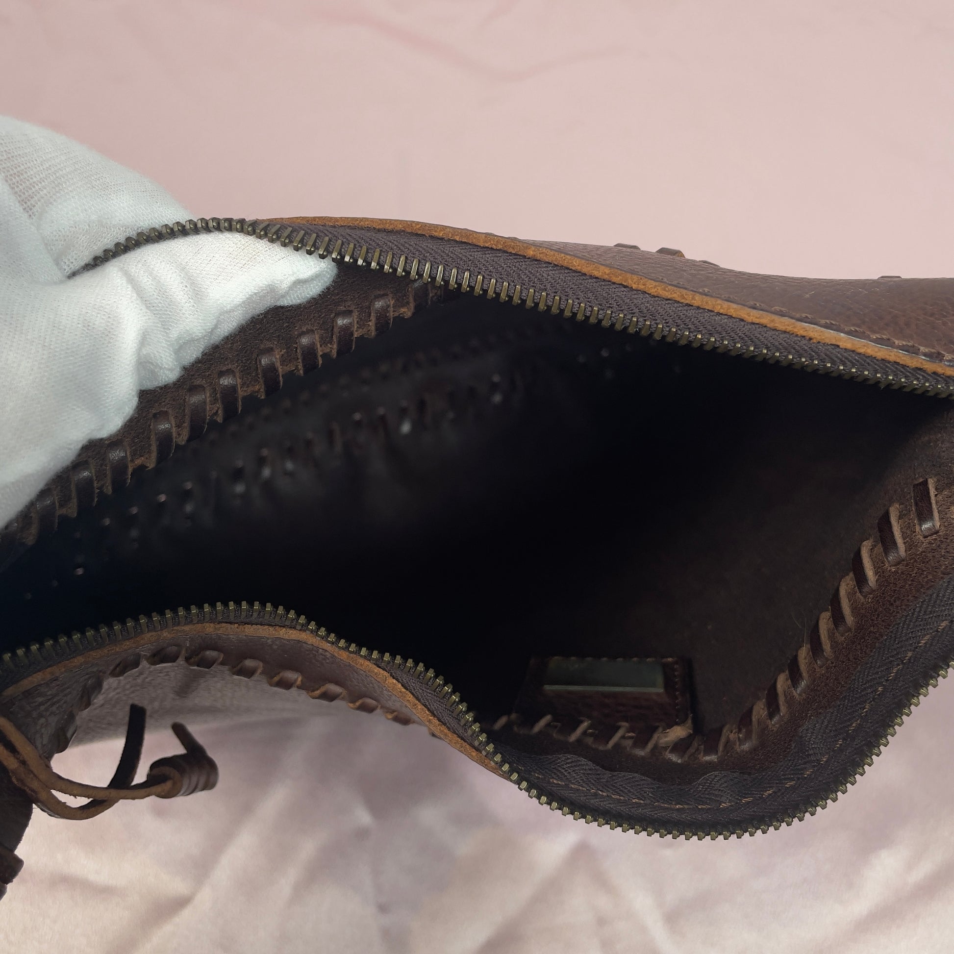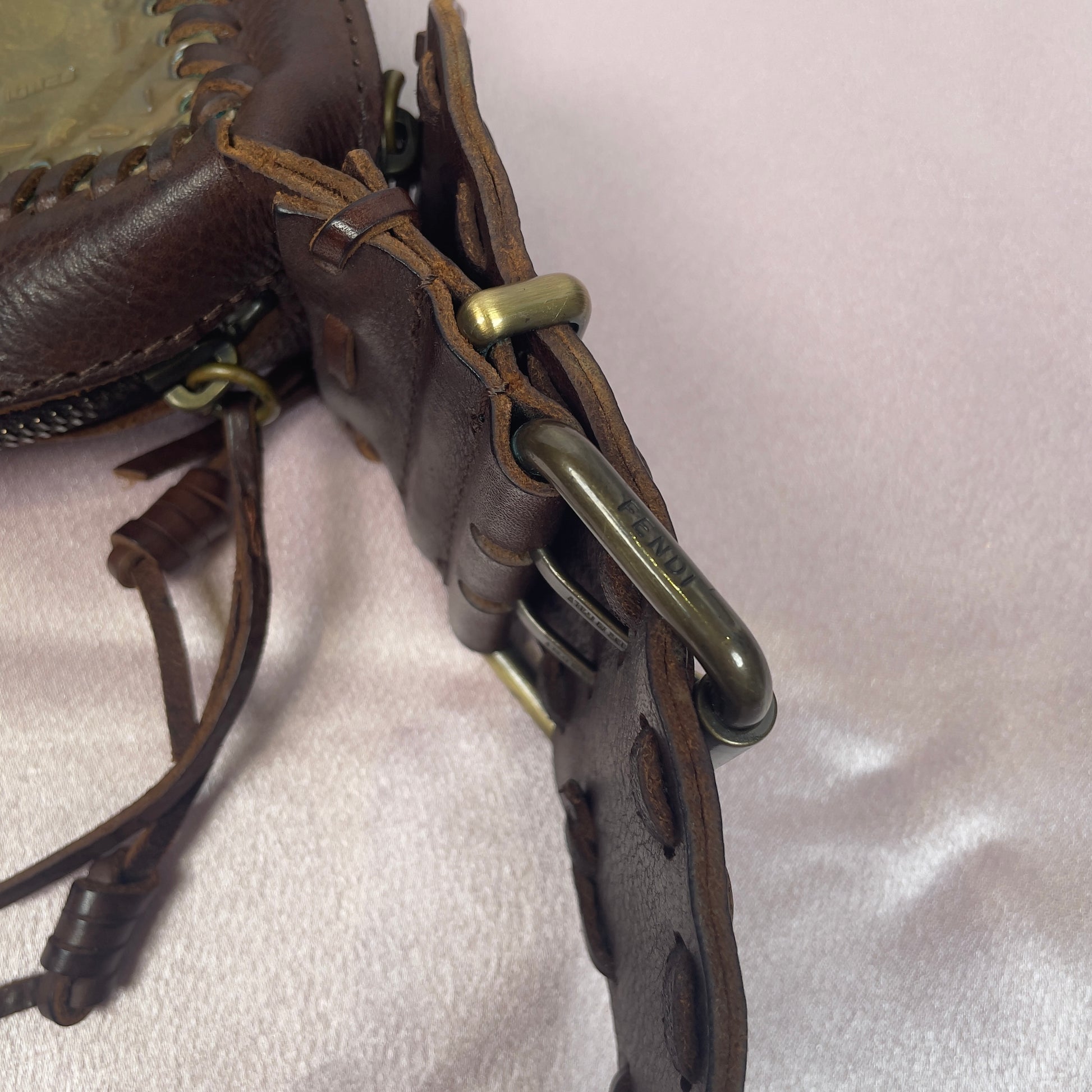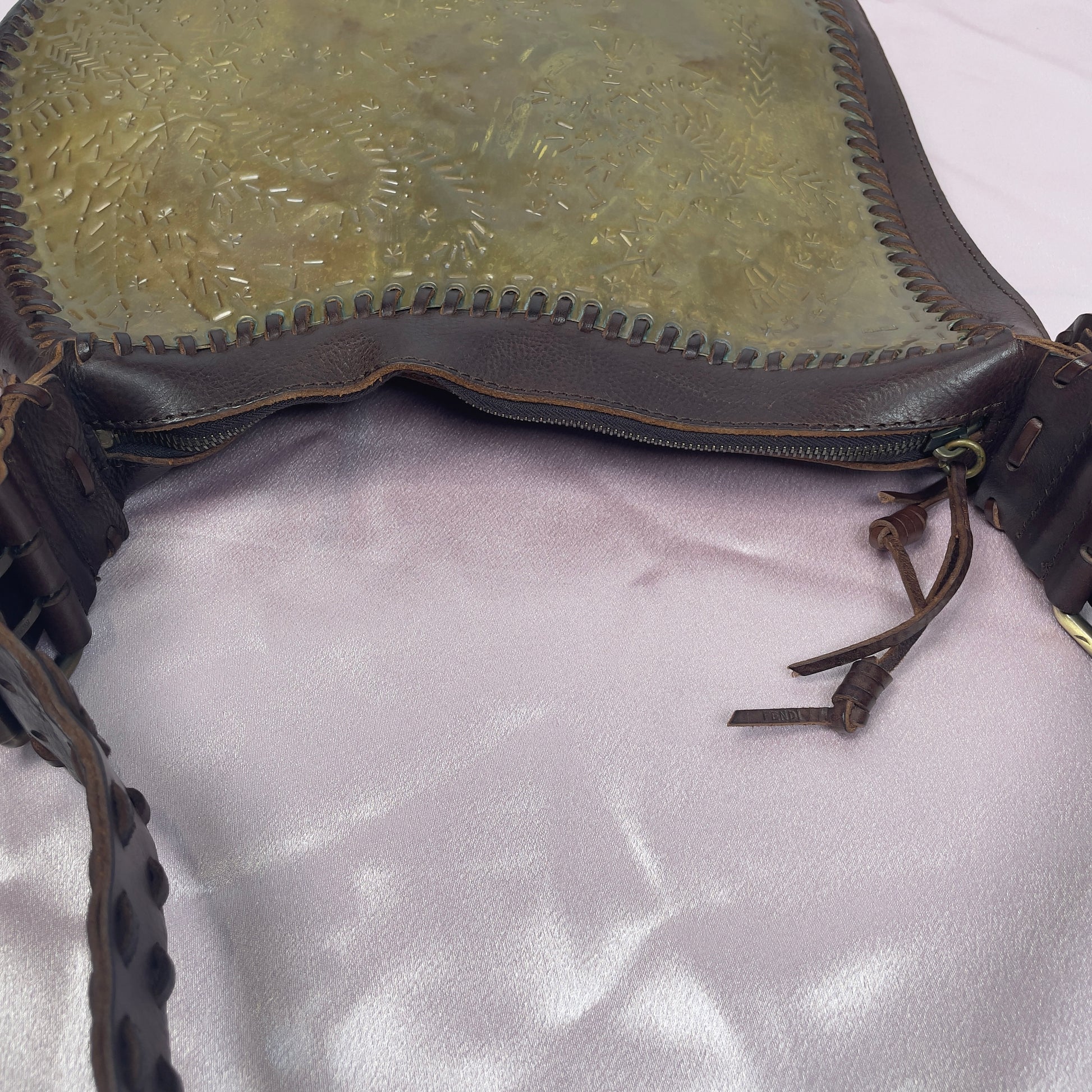 • The bag is overall in excellent condition, the leather and copper plate is in impeccable shape. Patina is present where the leather cords and copper plate intersect along the frame, although not causing any functional issues and unnoticeable upon wear.