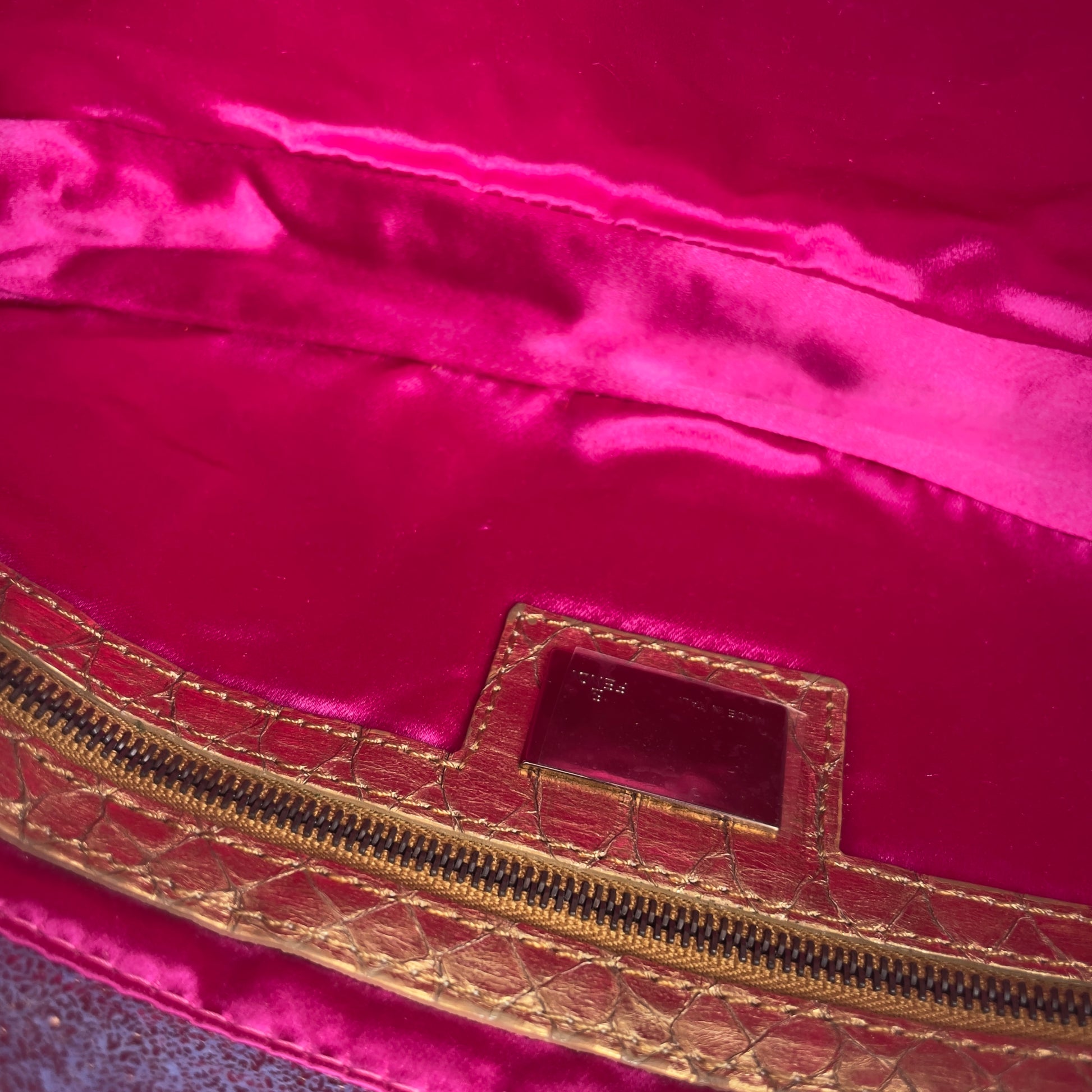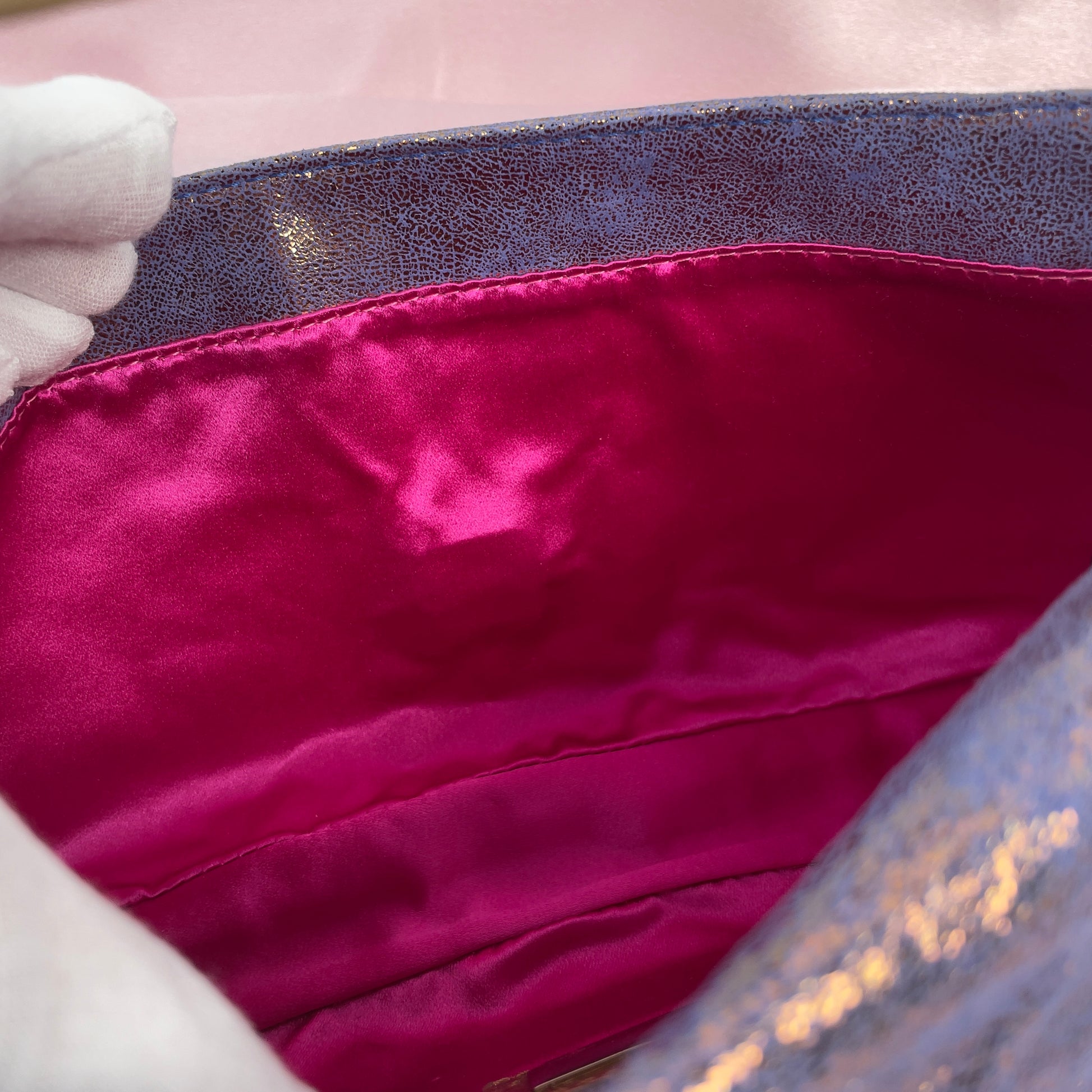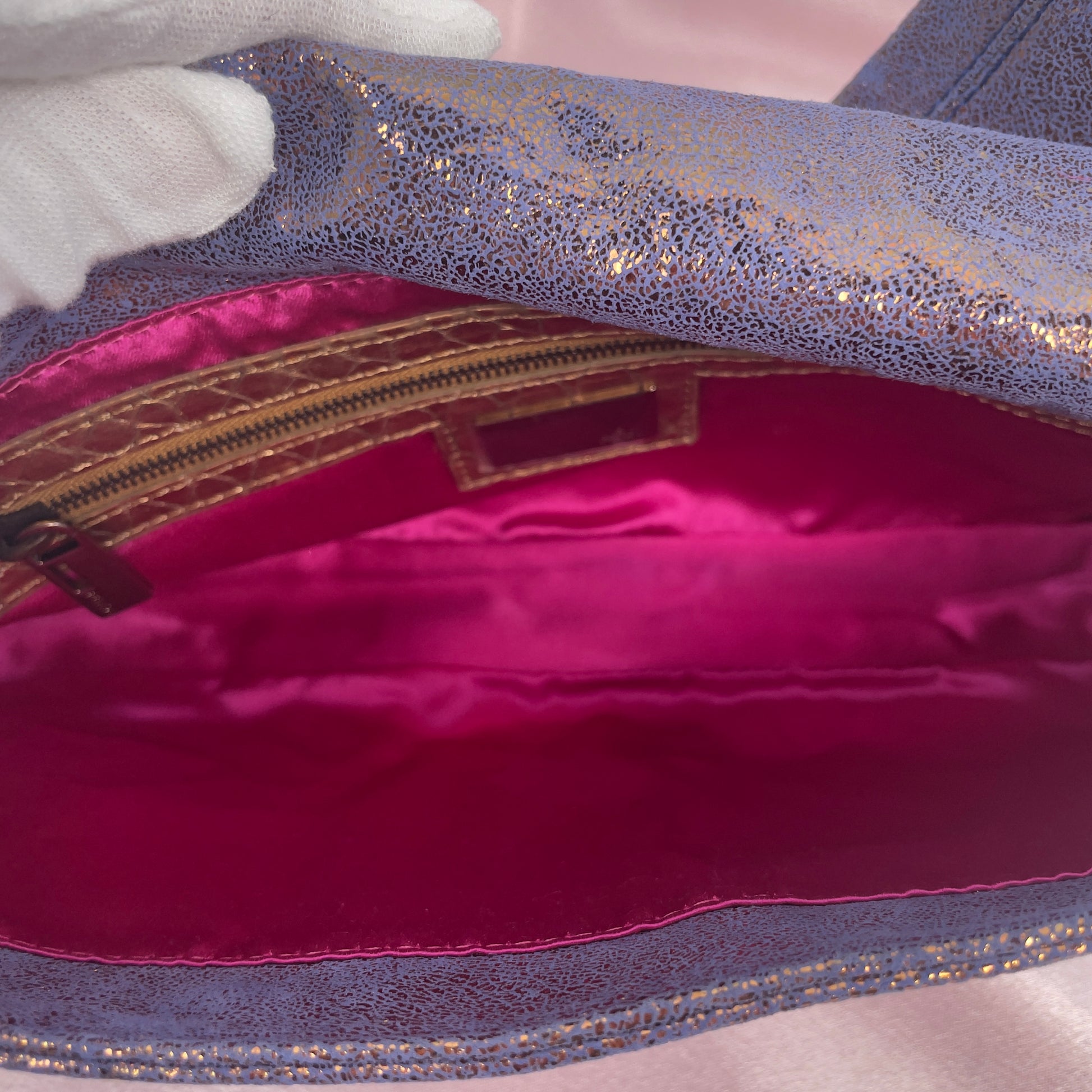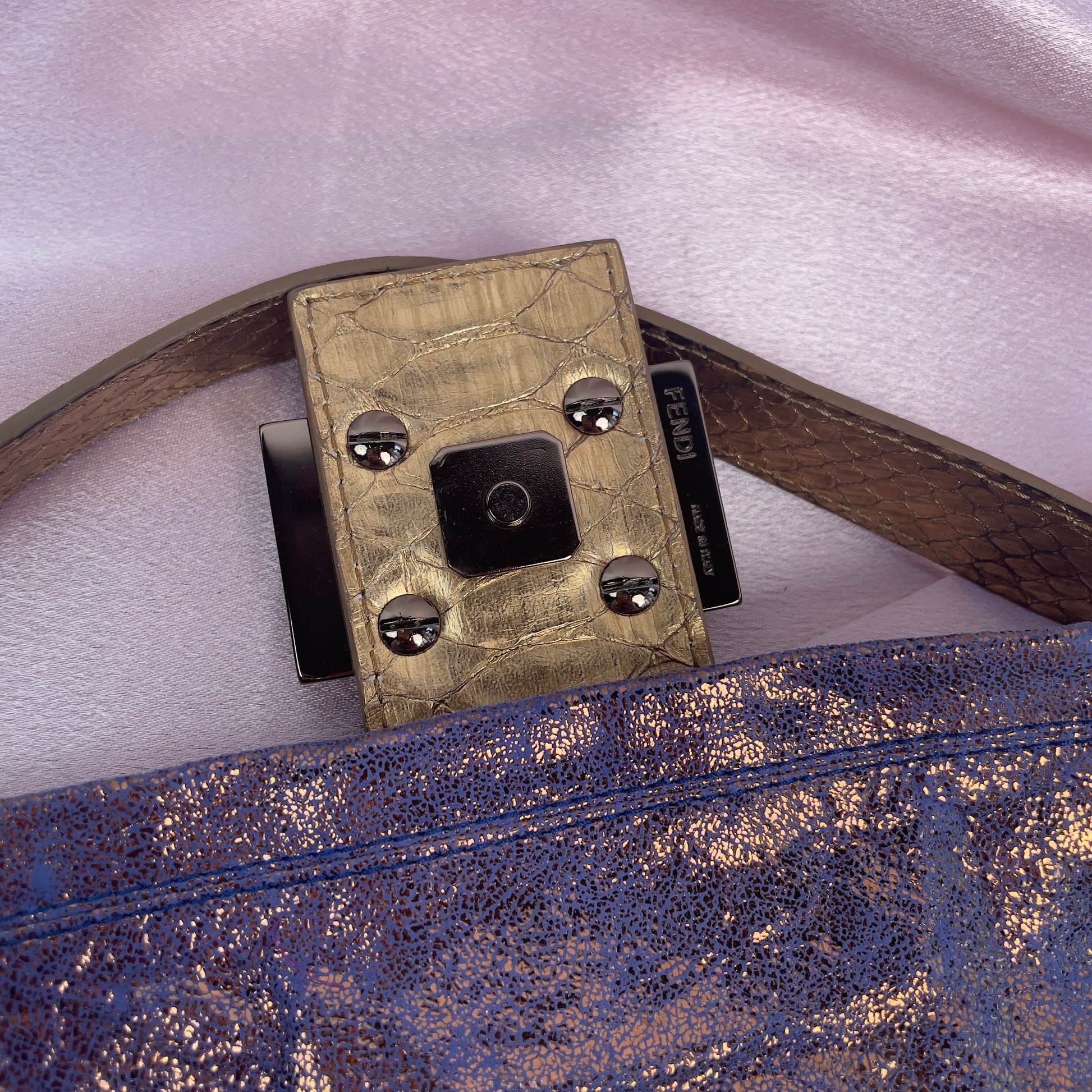 An absolute rarity. This baguette features an iridescent suede body, metallic python trims and a natural stone embedded in the FF logo. So so gorgeous and such a beautiful and unique rendition of the classic baguette body. I am so pleased to find it in excellent condition. This bag will come with a certificate of authenticity.