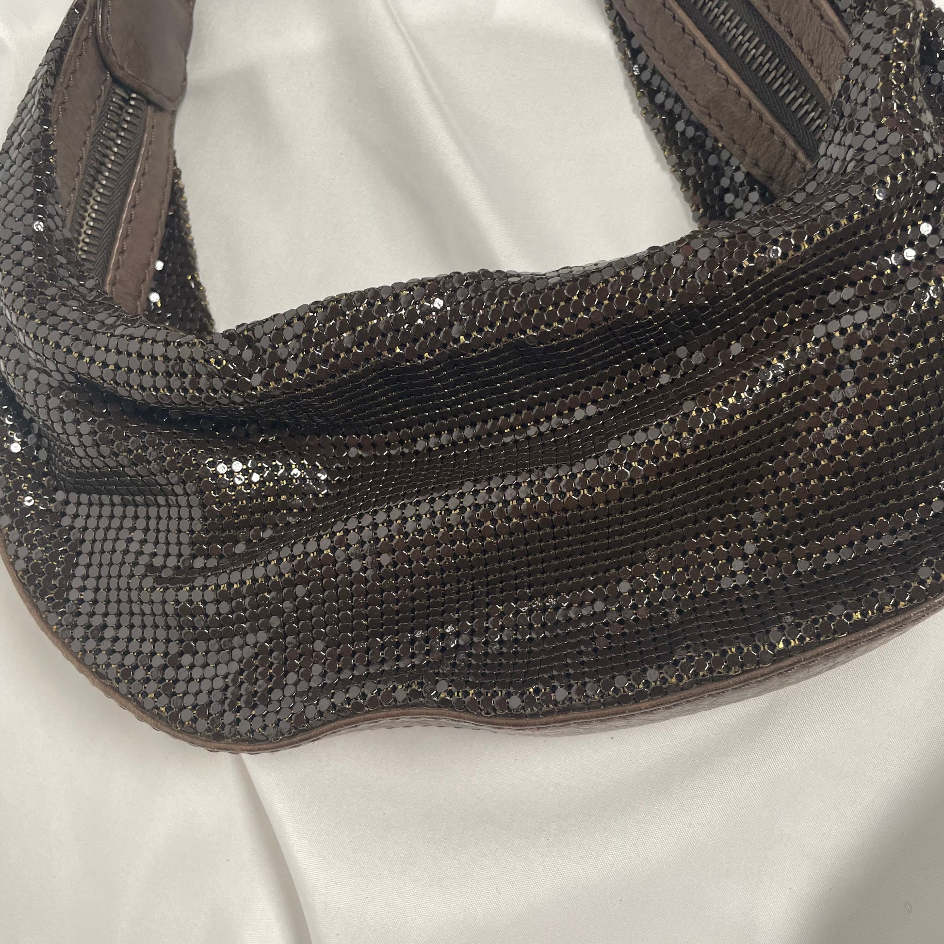 This is the mini model of the mesh bag line made by Chloé under Pheobe Philo. The straps are detachable and adjustable in length. The colour is a brownish grey.