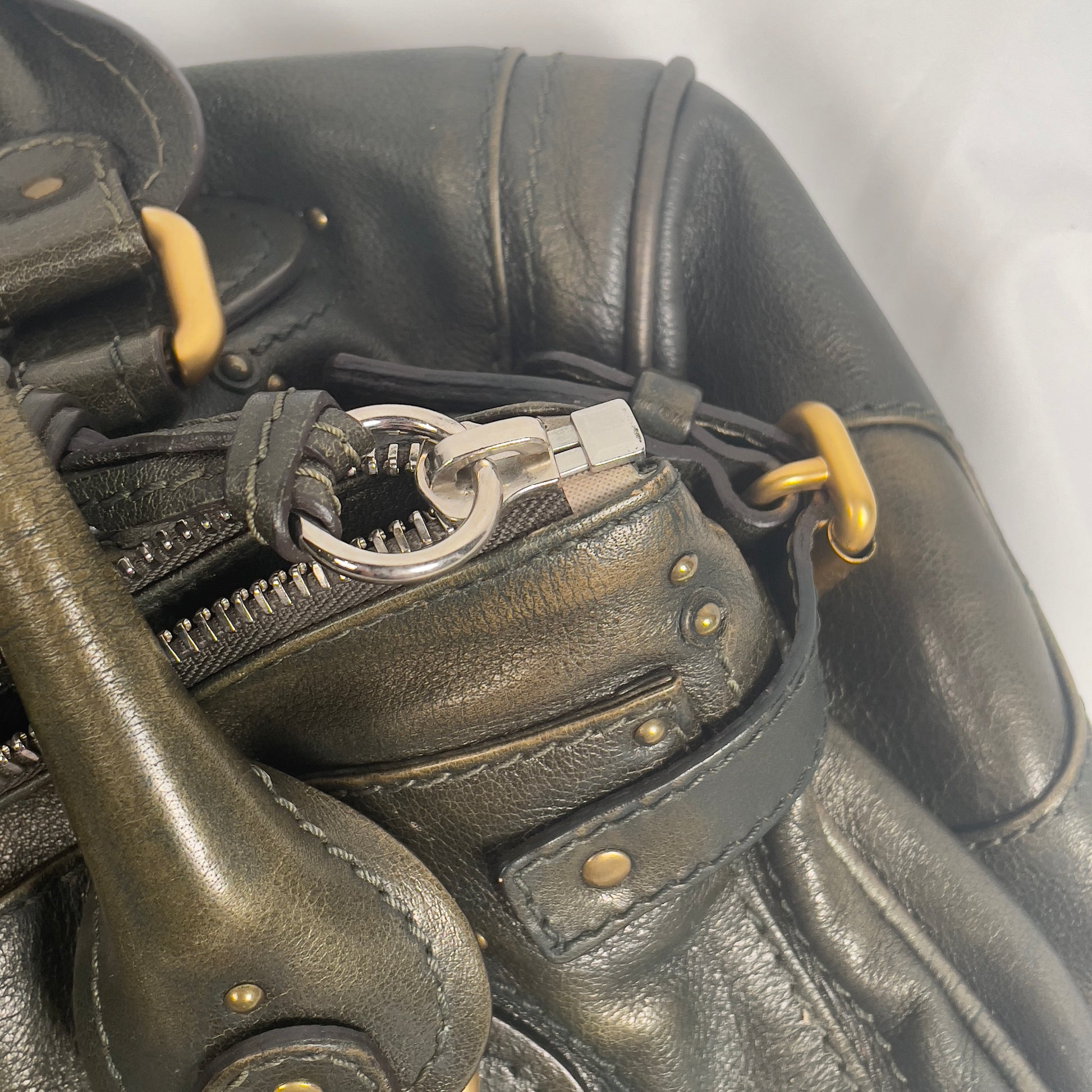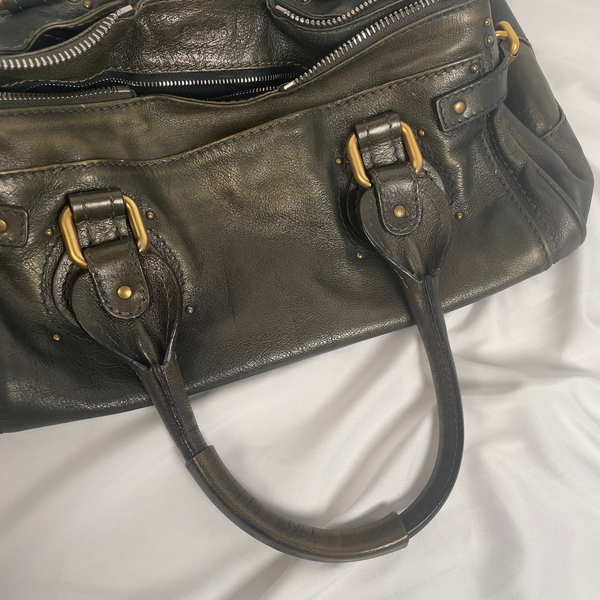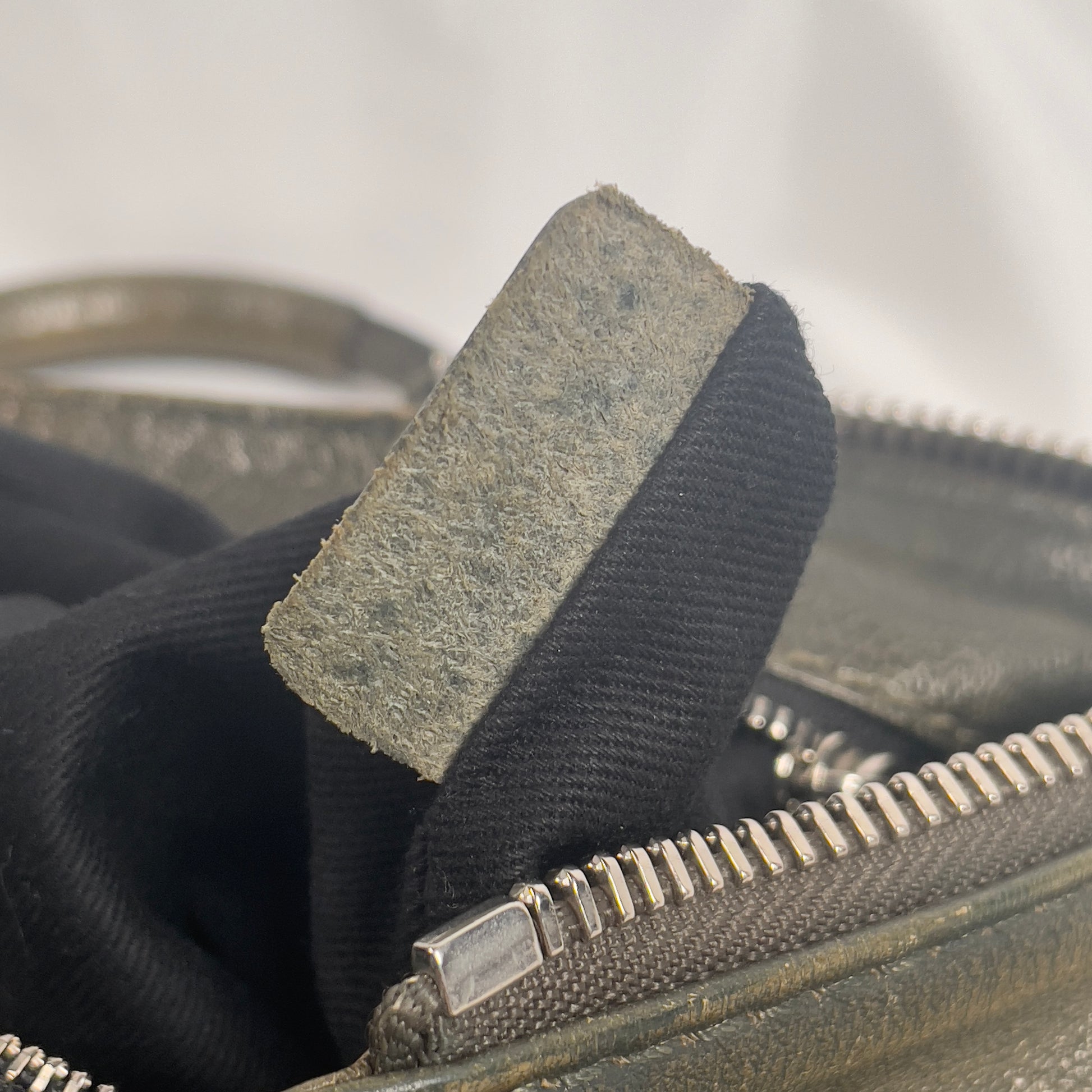 Four corners had major scuffing, bag was taken to a bag repair and mended, the colour used on the repair areas are slightly different to the rest of the bag as the "oil slick" look was not replicable. Price is lower due to this
