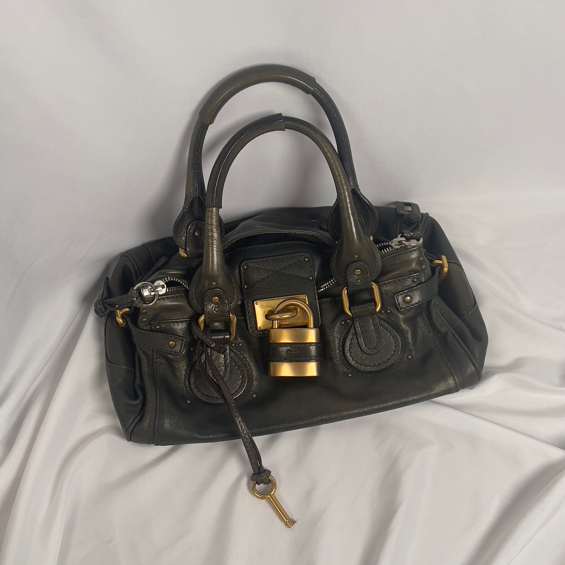 Condition: Great used condition. Inner lining is clean, padlock and key fully functional. Key has minor points of top coat chipping. Leather has a few minor areas where colour has been scuffed. Four corners newly mended, see above description.