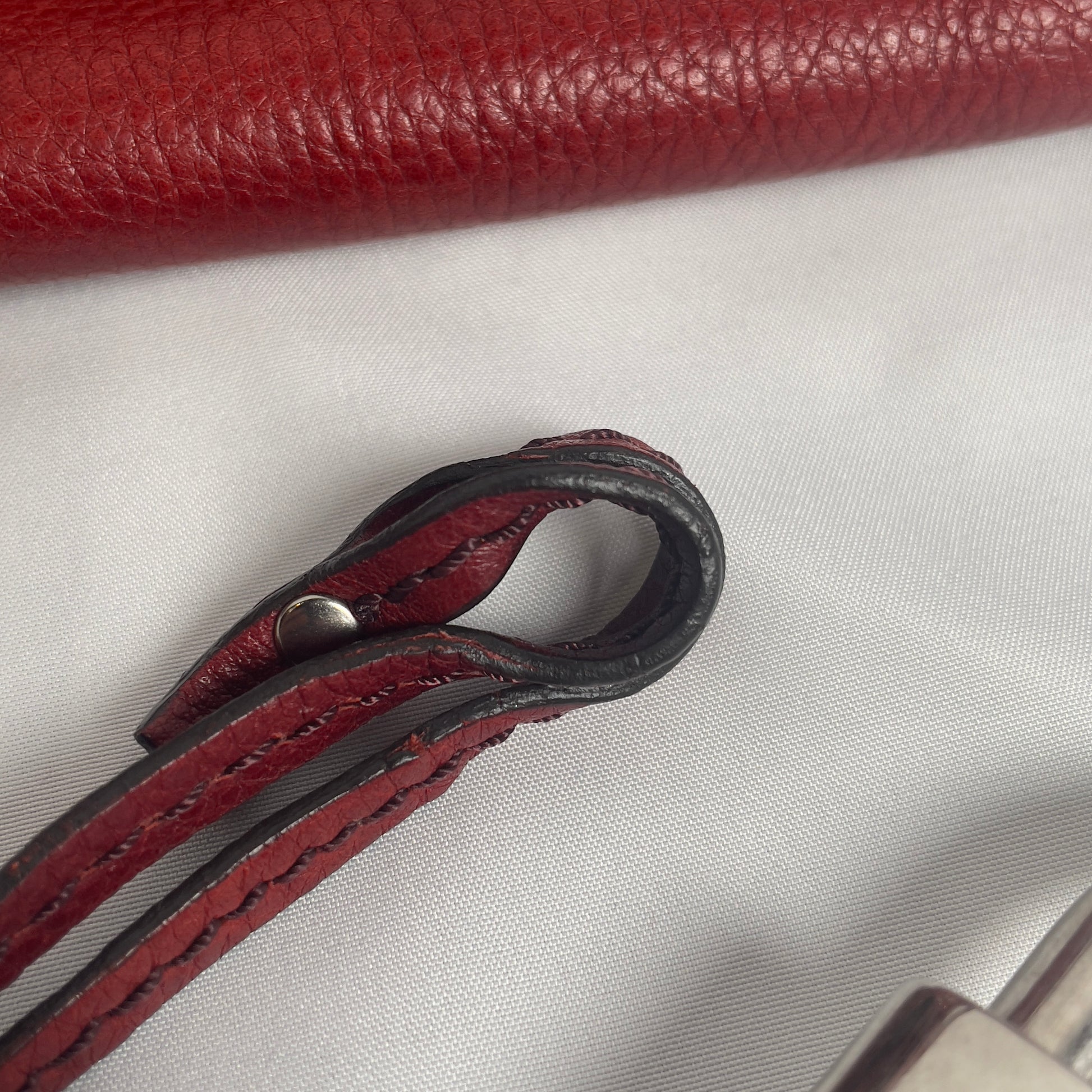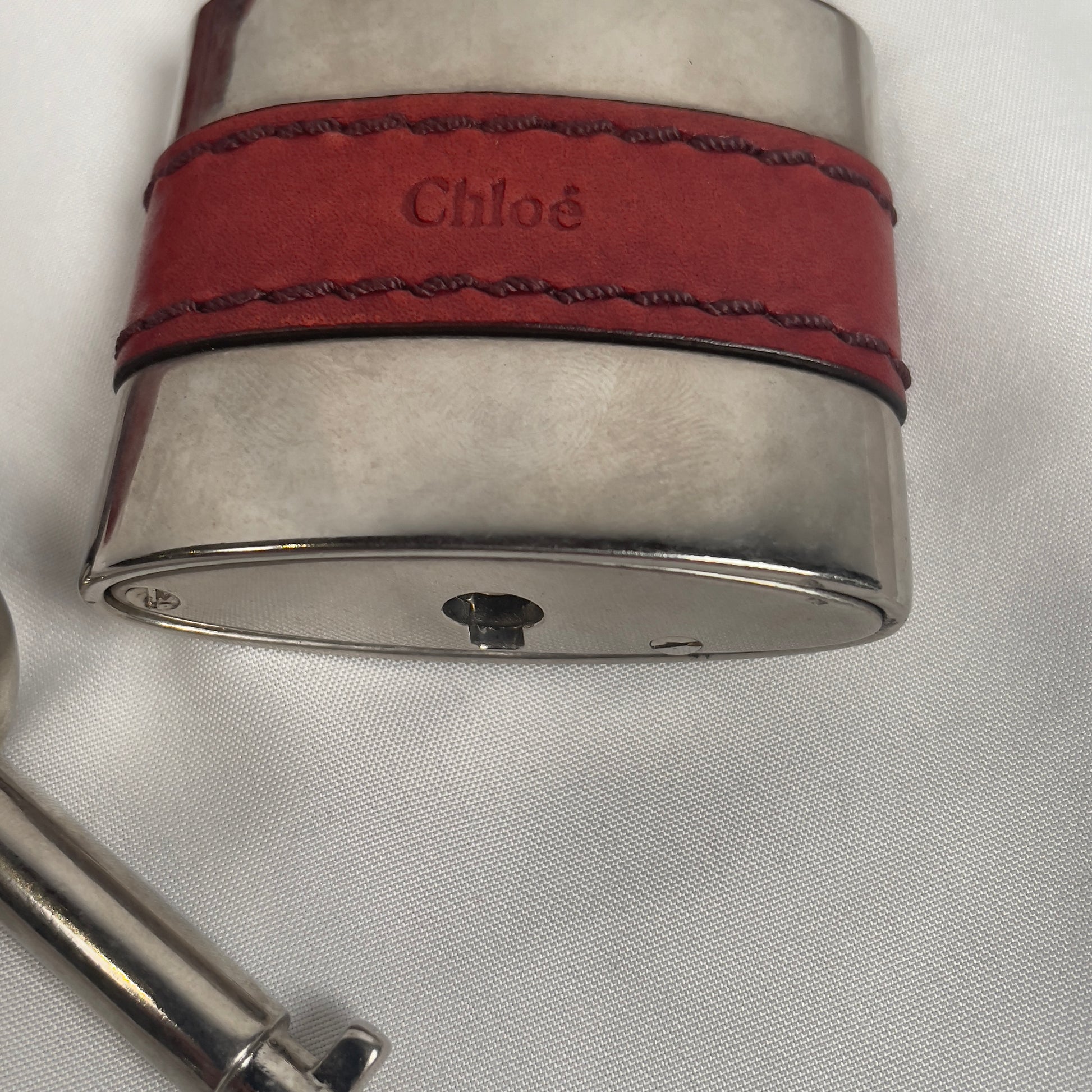 Condition: Excellent used condition. Inner lining is clean. Some leather discolouration at points, padlock and key fully functional, padlock has the slightest tilt on the bottom on the right side. Leather strap for key has a region where the leather layers have come apart (not noticeable as this spot is where the strap cinches the hardware), this will be glued with leather glue by us (We just want to be transparent of the condition and what has been mended).