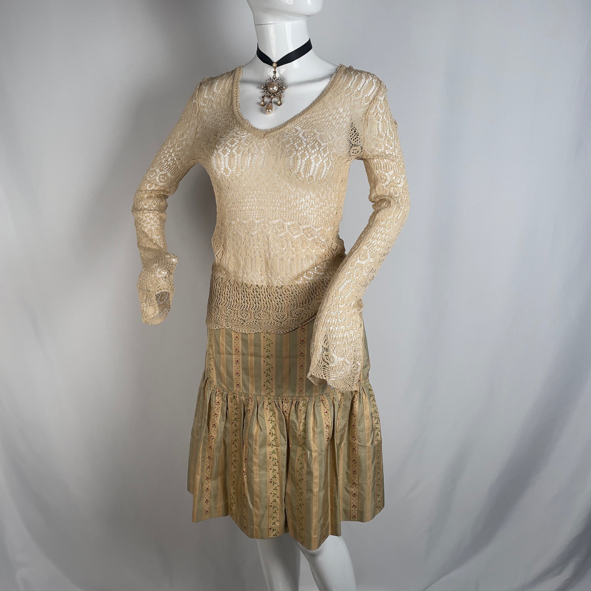 The 2003 RTW runway is one of Ralph Lauren's most identifiable and magical collections. This skirt is seen on the runway as look 37. The model is styled with a cameo choker and dangly earrings, pairing so immaculately with the corset and midi skirt...the exact one we have for sale! The skirt is unapologetically romantic and in your face, very reminiscent of the baroque style period. Perfectly pairing with a corset, singlet or a throw on jumper, one of those pieces you can wear up and down.